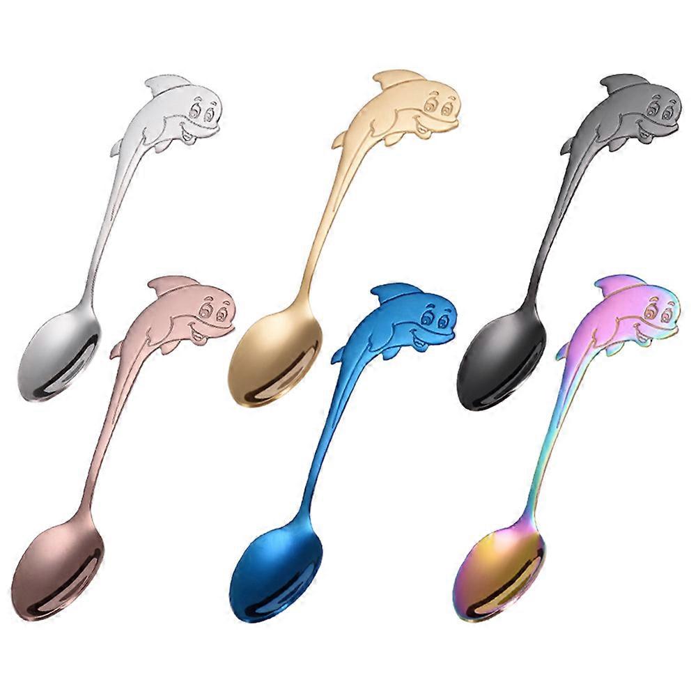 Stir Spoons Cartoon Dessert Stirring Dolphin Shape Stainless Spoons Home Use 6Pcs