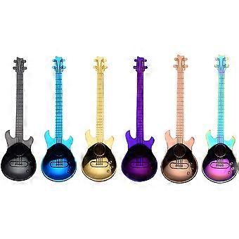 Guitar Coffee Spoons 6-Park Creative Cute Spoons 18/10 Stainless Steel Teaspoons Guitar Shaped (multi-color)