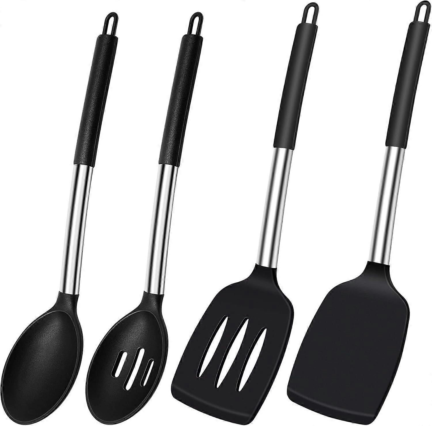Silicone Spatula Spoons for Cooking, Heat Resistant Silicone Slotted Spatula Solid Turner Kitchen Spoons Set for Non Stick Cookware 4 Pack