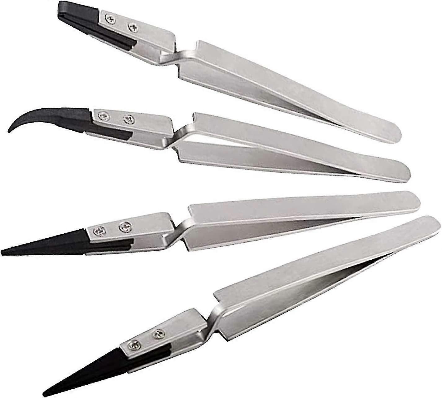 Tweezers Antistatic Stainless Steel Tweezers Plastic Electronic Tweezers Professional Precision Tweezers Jewelry Tweezers for Hobby Crafts Model Makin