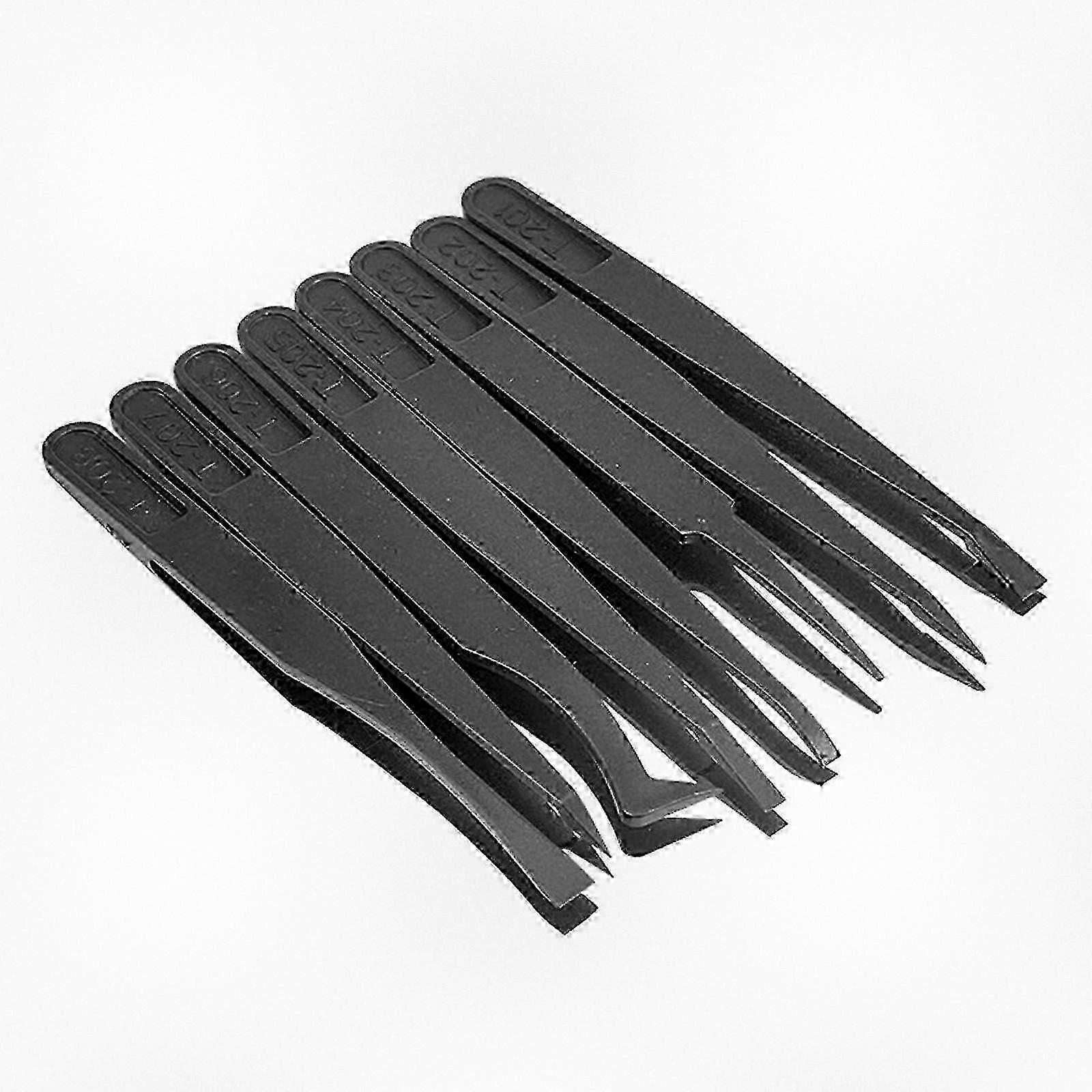 FeaturesThiselectronicESDtweezerssetincludes8differenttweezerstocatertoyourvariousneeds.TheseESDprecisetweezersarecraftedwithasharproundedtip,ensuringsturdinessandprecision.ConstructedfromBlackPVCCarbonFiber,thetweezersareresistanttoacids,alkali,andmostchemicals.Withanantistaticfeature,theywillnotcausestaticdamagetosensitiveelectroniccomponents.Idealforprecisionelectroniccomponentproduction,mobilephonerepair,semiconductorrepair,computerlaptoprepair,watchandjewelryfitting,cosmetichairremoval,andmanyotherindustries.SpecificationsMaterialCarbonFiberLength122mm4.8in,117mm4.61in,114mm4.49in,115mm4.53in,125mm4.92inTypeT201T202T203T204T205T206T207T208T201flatheadtypeissuitableforhandlingcircuitintegratedchipstopreventcomponentdamage.T202finetiptypeissuitableforhandlingprecisionelectroniccomponents.T203roundtiptypeissuitableforhandlingprecisionelectroniccomponents.T204roundwidetypeissuitableforhandlingsmallintegratedchips.T205thinflattypeissuitableforhandlingchipcapacitorresistorelements.T206curvedtiptypeisdesignedfornarrowspacesandparallelhandlingofsmalldevices.T207smalltiptypeissuitablefornarrowandsmallprecisionparts.Quantity8pcsNotePleaseallow13cmerrorduetomanualmeasurement.Makesureyoudonotmindbeforeyoubid.Duetothedifferencesbetweenvariousmonitors,thepicturemaynotaccuratelyrepresenttheactualcoloroftheitem.Packageincludes8XPrecisionTweezers