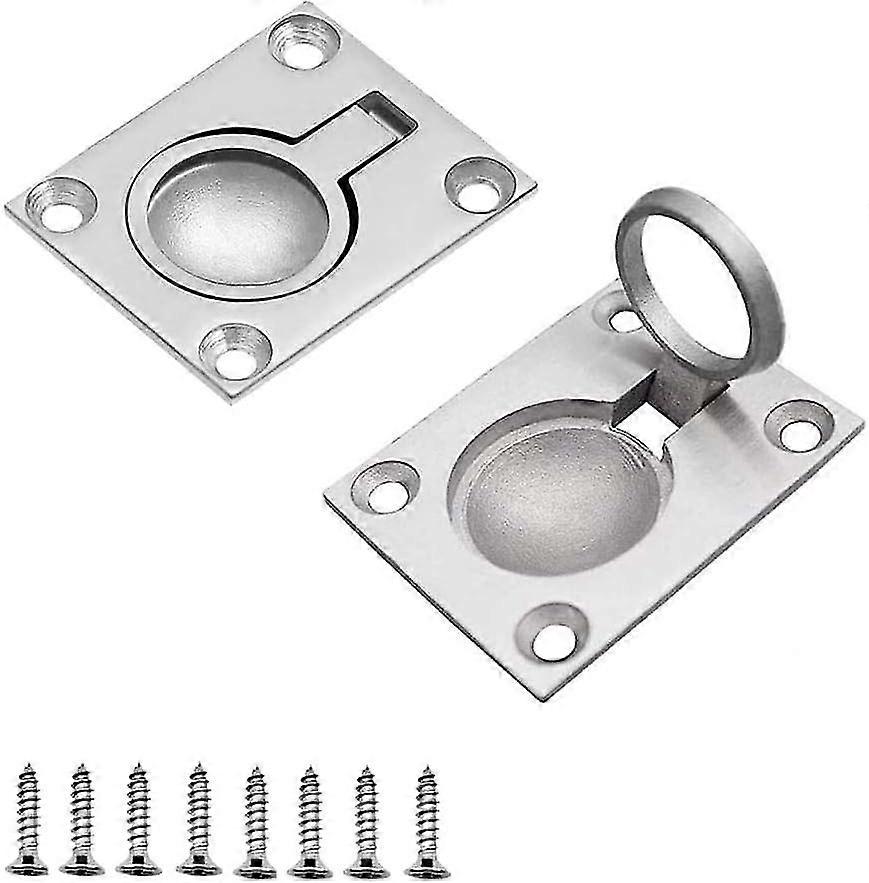 Package and size: Size: 50 * 40mm / 1.96 * 1.57in (L * W). Package includes 2 flush ring pull handles and 8 screws. Excellent material: This flush ring pull handle is made of high quality 304 stainless steel, maximum corrosion resistance and durability in the saltwater environment. Recessed design: Wall mounting can maintain a flat and smooth surface, saving space and avoiding collisions. Equipped with screws, it is easy to install, and the pull ring is fixed by all welding work, seamless, stable and durable. Widely Application: It can be used for cabinet door hatch, sliding door, wardrobe, cabinet, flush panel, kitchen drawer, small floor hatch, etc. Specification: Material: premium 304 stainless steel Color: silver Size: 50 * 40mm / 1.96 * 1.57in (L * W). Groove depth: 11.4 mm Thickness of the square plane: 2.5 mm The package includes 2 * flush ring pull handle 8 * screws