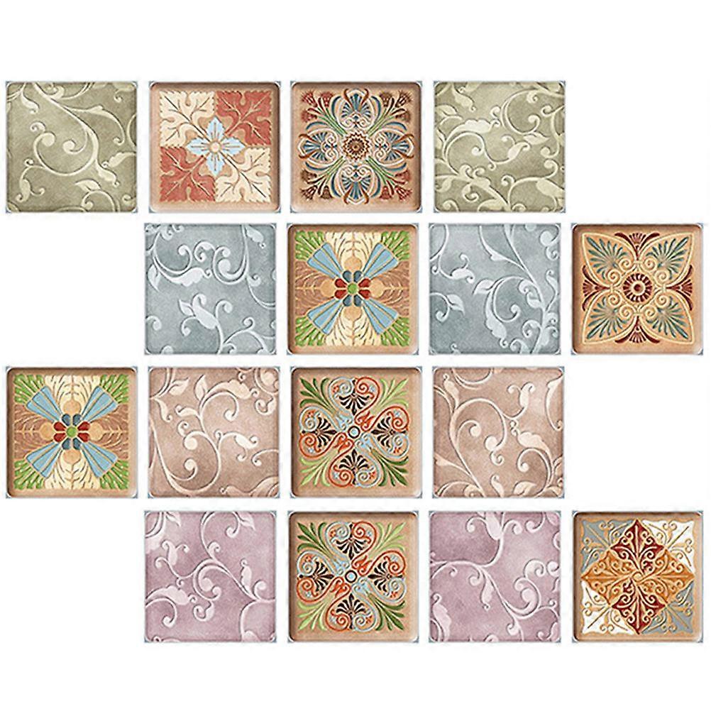 Tile Stickers Simulated Tile Stickers Waterproof Wall Decal Home Decoration Assorted Color 15cm x 15cm 16Pcs