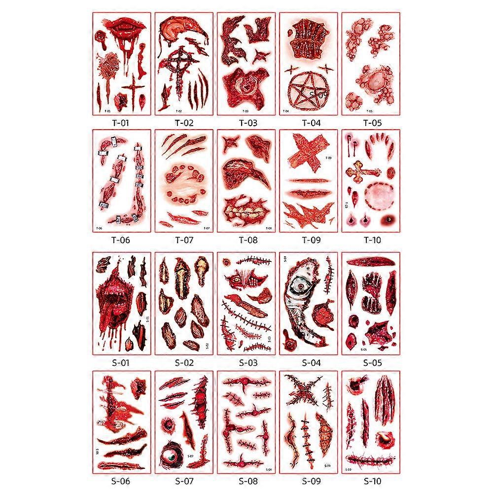 Fake Blood Stickers 20 Sheets Gruesome Face Decals For Masquerade Assorted Color Halloween Decoration