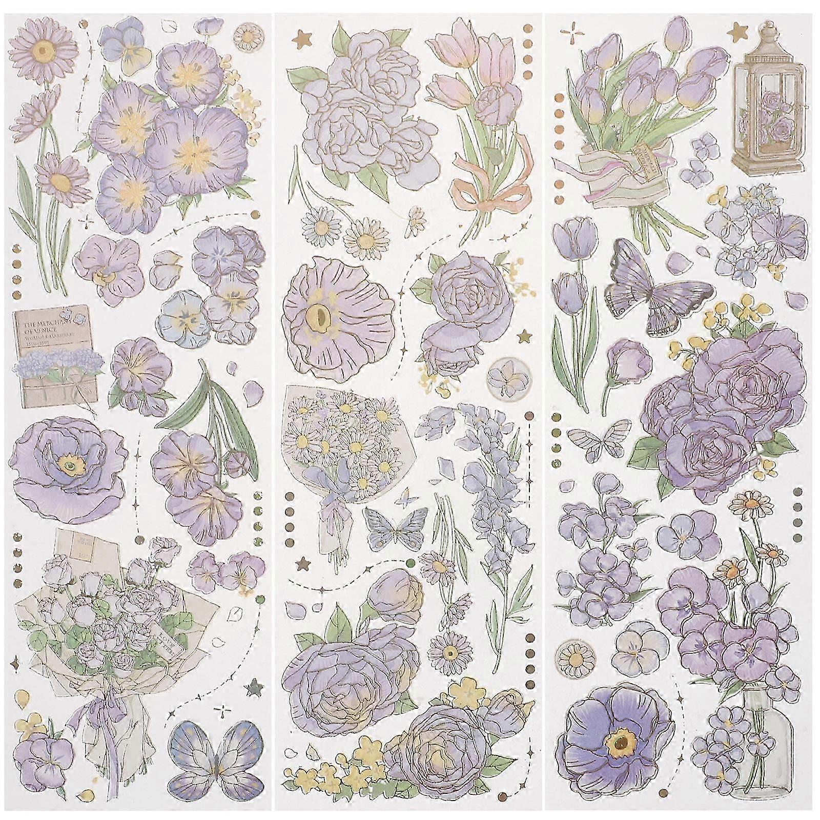 Vintage Floral Scrapbook Decals for Adults - 5 Pack DIY Photo Album Craft Stickers 7.07x2.36x0.04in