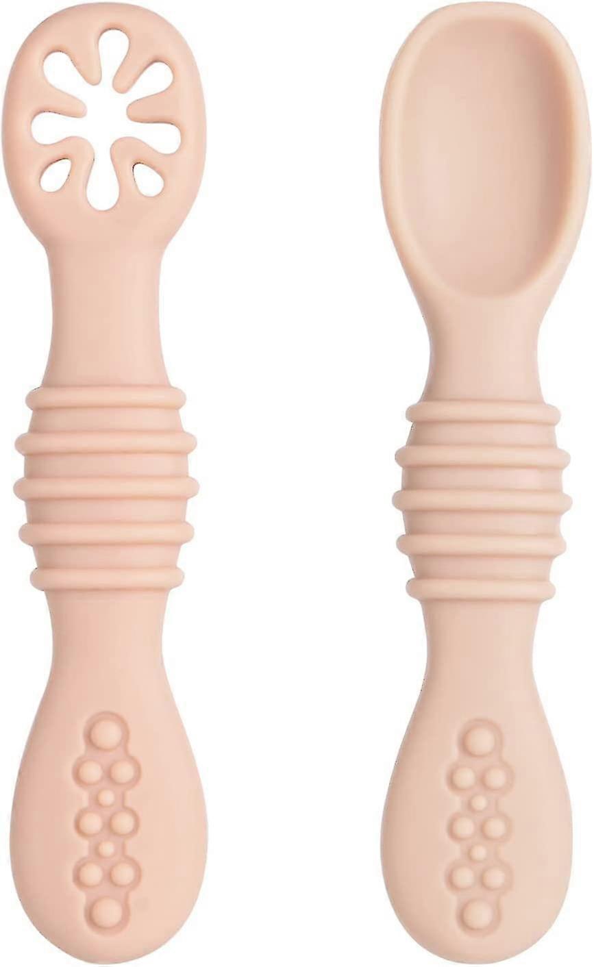 Silicone Baby Spoon,2pcs Baby Spoons Learning Utensil Suitable For First Stage Teething Recommended By Weaning Expertsskin Color