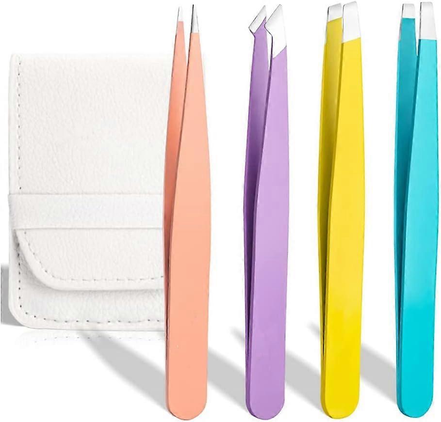 Eyebrow Tweezers 4 Pack, Stainless Steel Slant Tweezer Set and Pointed Hair Removal Tweezers, Precision Tweezers for Ingrown Hair, Eyebrows Plucking