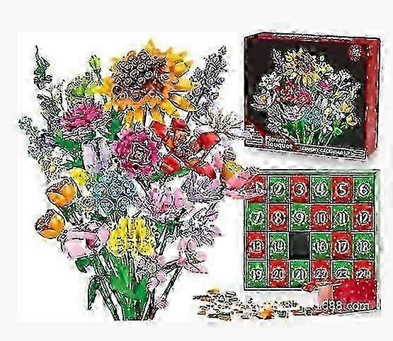 suitable for Flower Bouquet Blocks Christmas Advent Calendar, Xmas 24 Days Sunflower Bouquet Blind Box-jc