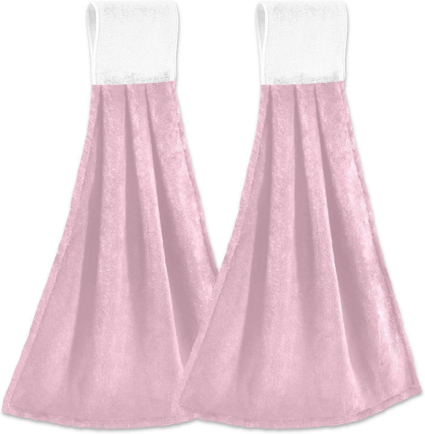 Pink Solid Color Hanging Tie Towels Set of 2, Soft Absorbent Kitchen Hand Towels