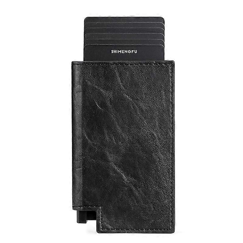 Pop-up Leather Metal Card Holder RFID Bifold Wallet 1. Large capacity can hold 9 cards and cash: 6 cards can be placed in the card box + 2 cards and cash can be placed in the leather case + 1 card can be placed on the back 2. RFID blocking function to protect personal information from being leaked 3. Turn the bottom switch and the card will pop out 4. Two-in-one card holder and wallet, thin and easy to carry 5. Combination of metal and leather, delicate and textured 6. Material: aluminum alloy + PU 7. Dimensions: 113 x 68 x 12mm 8. Weight: about 66g