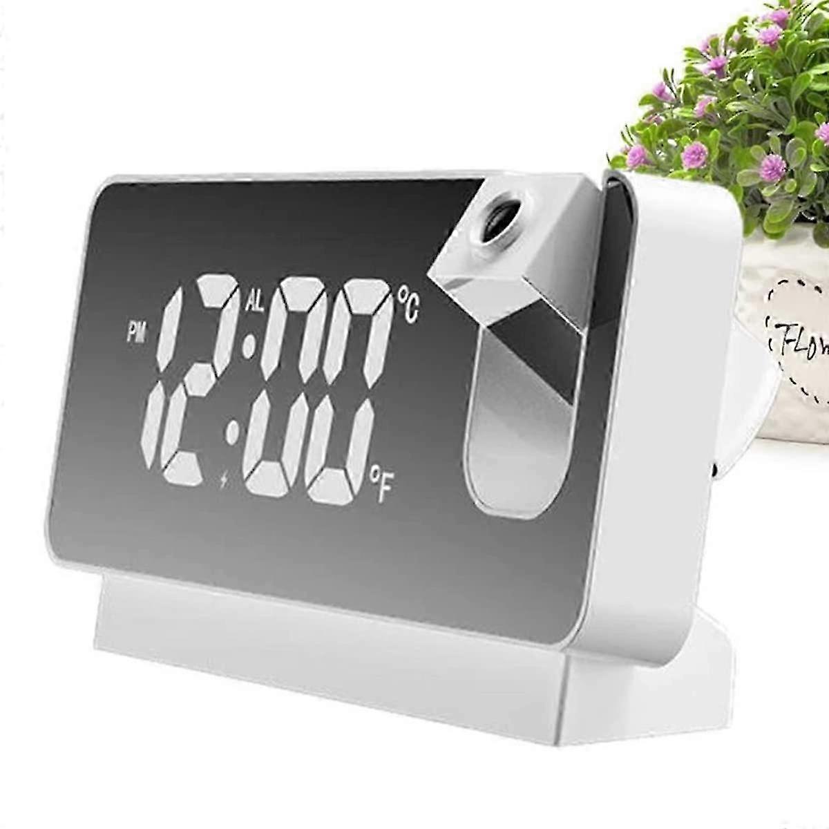 Projection Alarm Clock,Bedroom Bedsides Alarm Clocks with 180 Projector, LED Digital Alarm Clock,USB Charging(White)