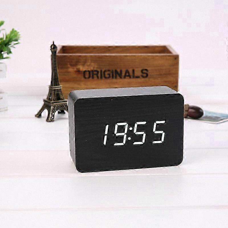 LED Alarm Clock with USB Charging, Temperature Display, Multiple Alarm Settings and Brightness Levels, Wooden Finish (Black)
