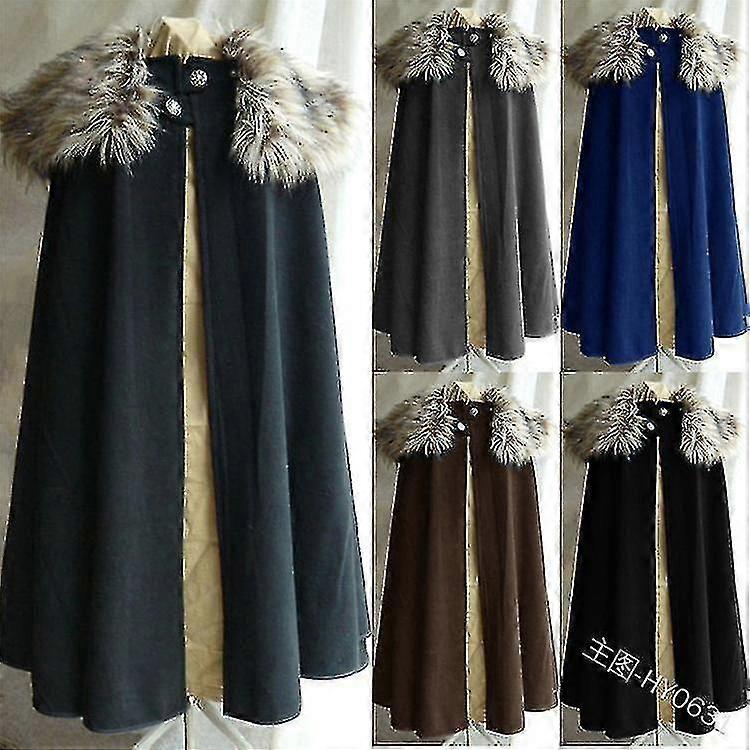 Mid-century Renaissance Warm Fur Collar Cape Cloak Cosplay Costume Top Coat