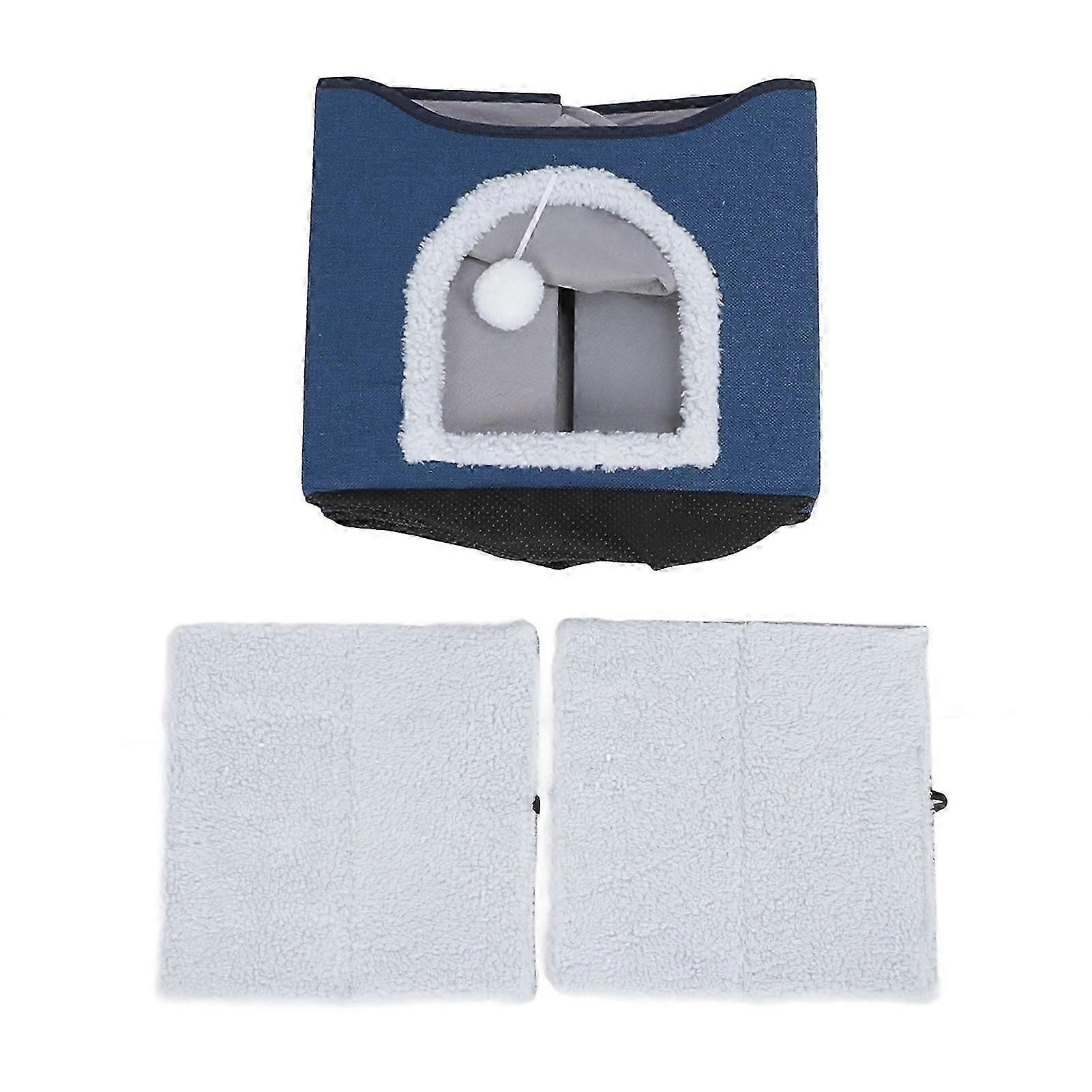 Foldable Cat House 2 Layer Collapsible Kitten House Multifunctional Cat Cave Bed Soft Cat Scratcher House for Indoors Navy Blue