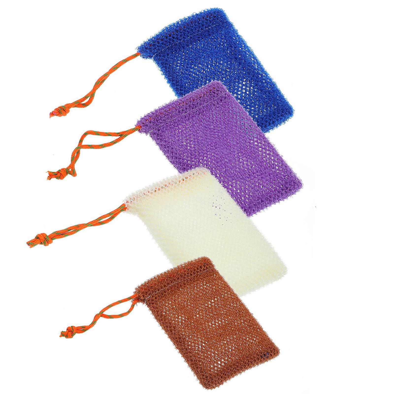 These bath soap pouches can deeply clean the skin, relax your tired body, providing comfortable feeling. You will have a good sleep after use. The drawstring allows you for hanging the soap pouch in your shower or bathroom to dry and keep your soap close at hand for the next application. Features -Color: Purple, blue, brown, beige. -Material: Nylon. -Size: 12.00X9.00X0.50cm/4.72X3.54X0.20in. - Friendly and comfortable for skin, provide the best . Great substitute for the shower, can be repeatedly cleaned and used. - design make the foaming net quickly create of bubbles which can better clean your skin, keep your skin bright and smooth. - These are designed with a drawstring for easy storage. Convenience to hanging up and dry after use. - Can be used as soap storage , it is a perfect solution that the soap is too small to be used. Help you collect small soap without wasting any soap. - These soap pouches can keep the soap clean, create much lather and exfoliate your skin, great for handmade soap, facial soap, cosmetic soap, fruit soap, oil soap and so on. Package list: 4 x soap