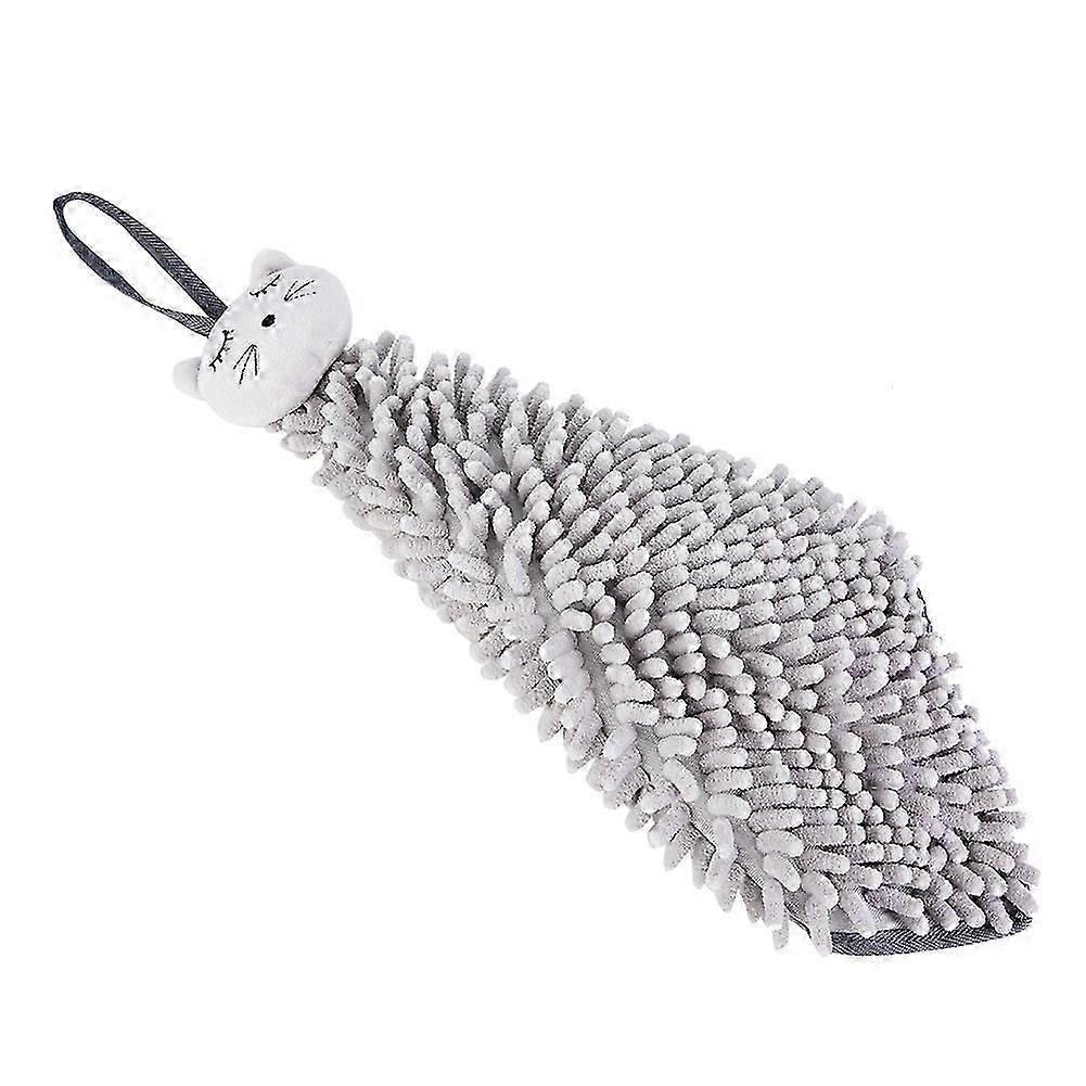 Hand Cleaning Towel Hanging Loop Washcloths Super Absorbent Cotton Hand Towel(Gray)