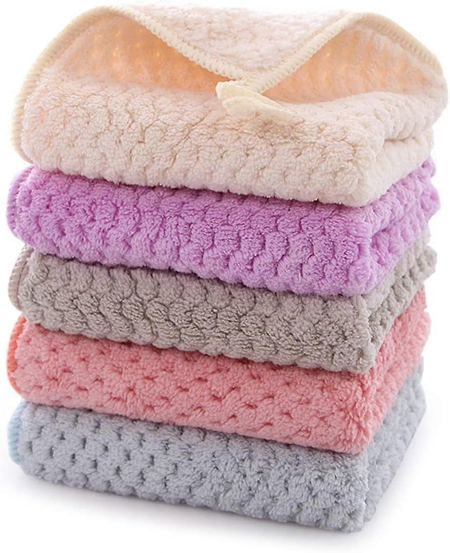 Small Hand Towel, Hand Towel, 5 Piece Kitchen Hand Towel Set, Coral Fleece Hanging Towel, Super Absorbent Quick Dry Belt Loop