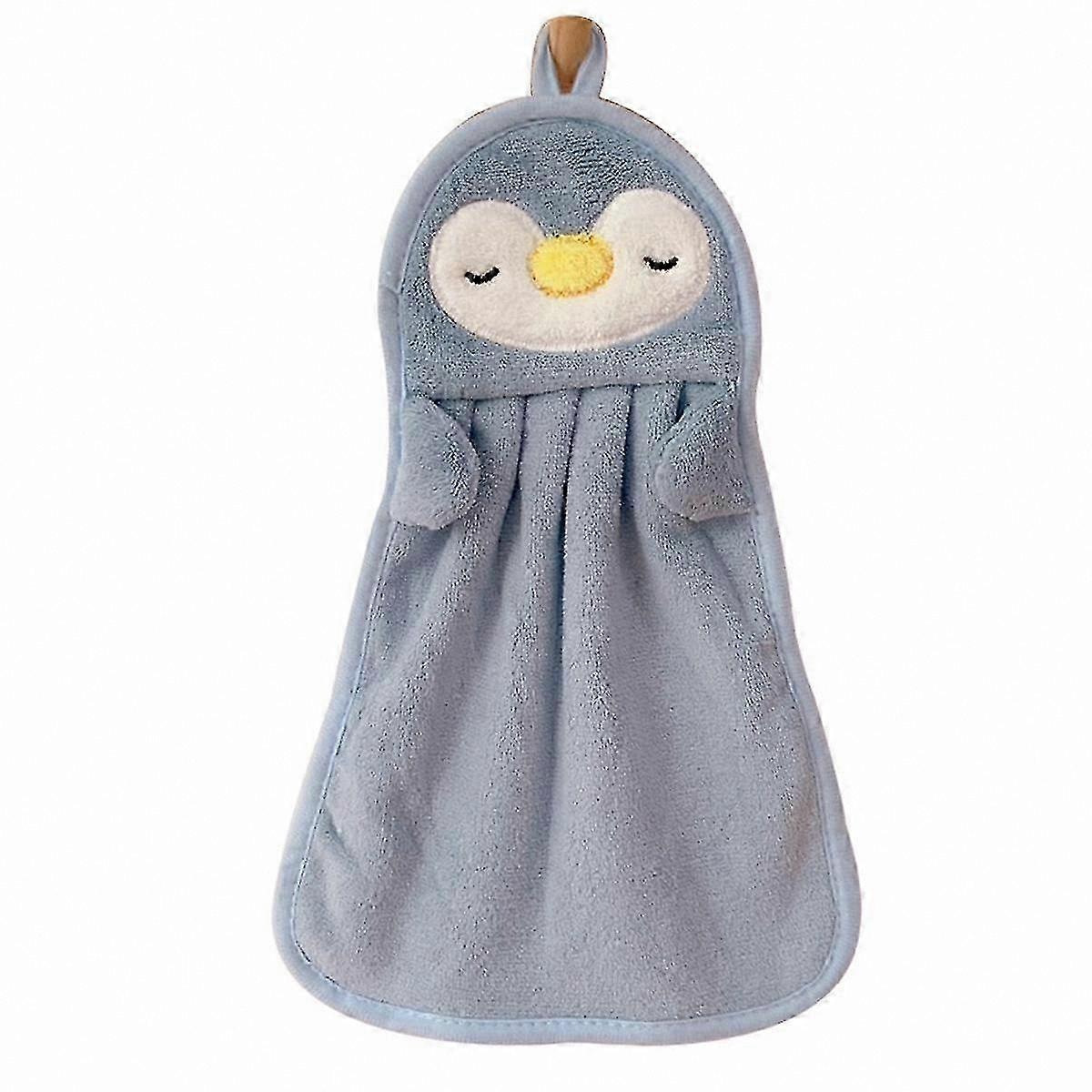 [Features]: Super soft. Strong water absorption, quickly absorbs moisture. Can dry hands quickly. Colorfast and durable. [Cute Design]: Designed with popular macaron colors and a unique, lovely penguin pattern. Easy to hang up anywhere, adding a fabulous look to any space such as office, kitchen, bedroom, bathroom, or living room. Loved by both children and adults. Color: Blue Material: Coral fleece Size: 25.5 x 39 cm Package Contents: 1 x Hand Towel Only the above package content is included; other products are not included. Note: Light reflection and different displays may cause the color of the item in the picture to vary slightly from the real thing. Measurement allowance is +/- 1-3 cm.