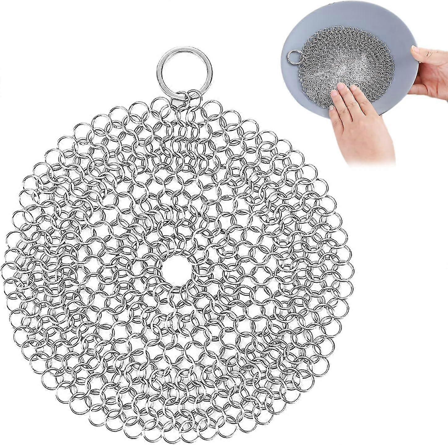 Stainless Steel Cast Iron Cleaner, Chainmail Scrubber, Round Cast Iron Cleaner, Stainless Steel Scrubber, Stainless Steel Chainmail Scrubber