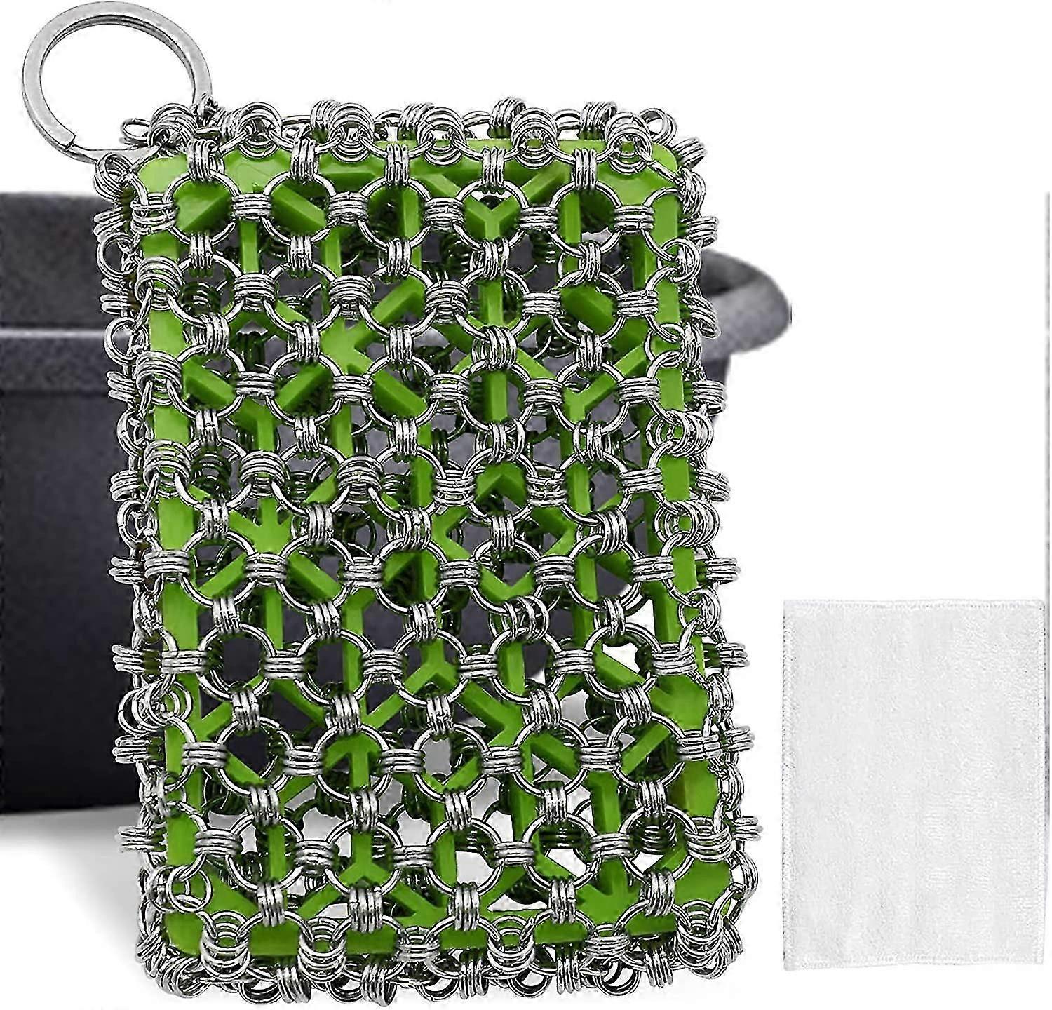 Cast Iron Skillet Cleaner Chainmail Scrubber with Silicone Insert, 316 Stainless Steel Chain