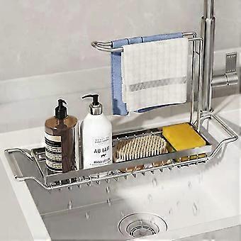 منظم بالوعة المطبخ ، منظم حوض المطبخ للإسفنج ، القماش ، الفرشاة ، سائل غسل الصحون ، منظم تصريف تلسكوبي فضي من الفولاذ المقاوم للصدأ