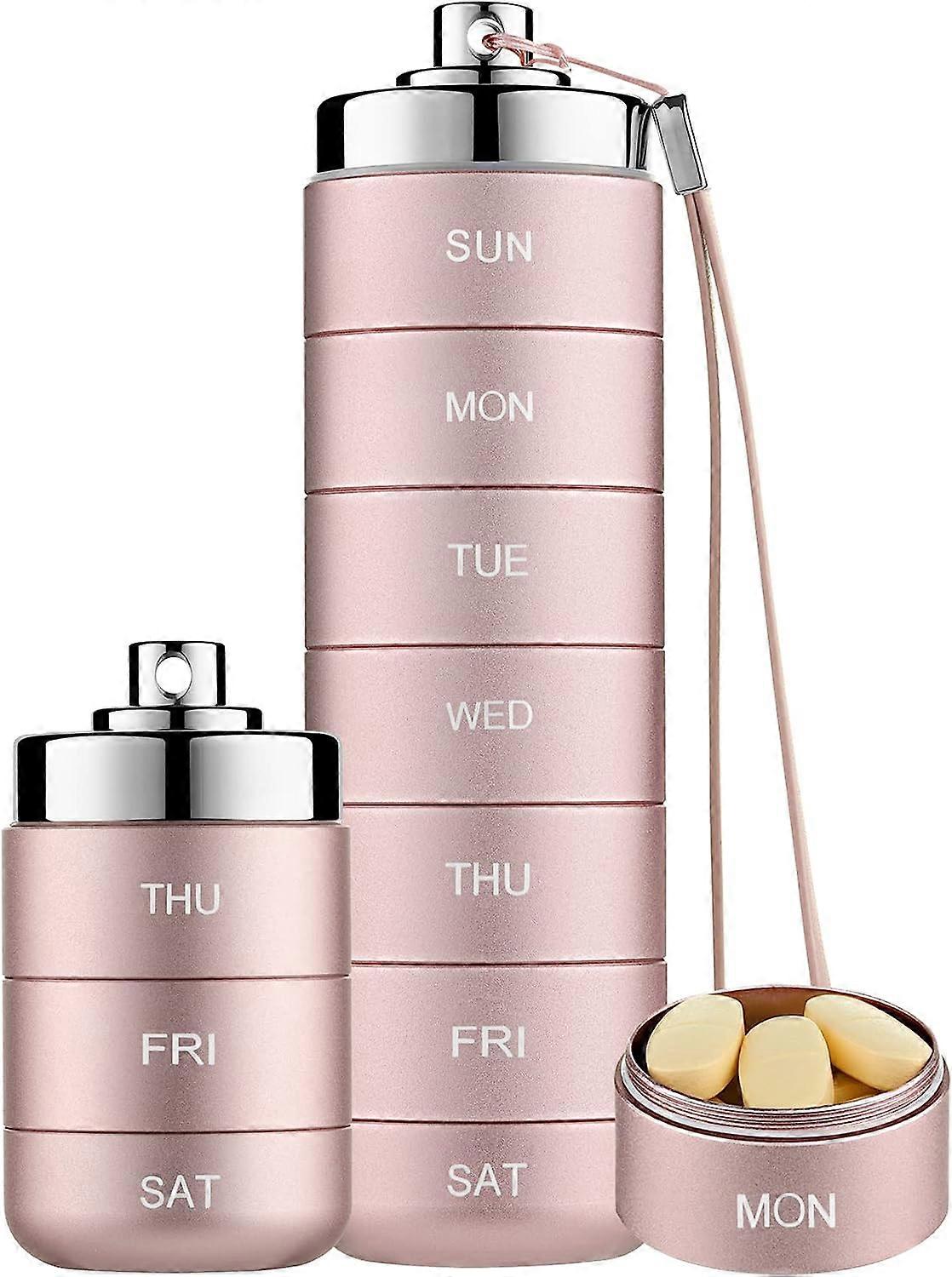 Metal Pill Organizer Weekly, Stackable Waterproof Travel Pill Box, Large Aluminum Alloy Pill Case Container, BPA Free 7 Day Daily Medicine Organizer f