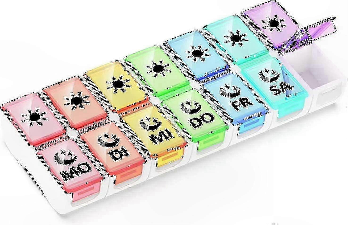 7-Day Pill Organizer, 2 Compartments Daily, Morning & Evening, 14 Slots, German Version