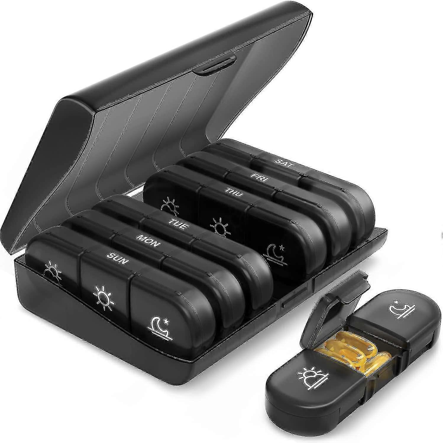Pill Organizer 3 Times A Day, Portable Travel Pill Box 7 Day (black)aespa