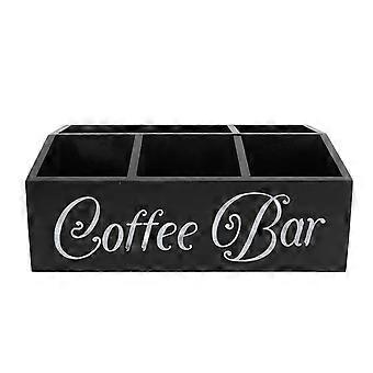 Coffee Station Organizer 5 Compartments Wooden Coffee Pods Holder Storage Basket for Countertop Black