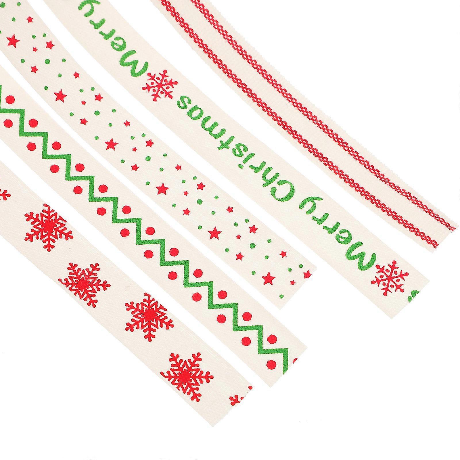 Patterned Ribbon Christmas Occasion Home Decorating Gift Givers Assorted Color 5m Per Roll 5 Rolls
