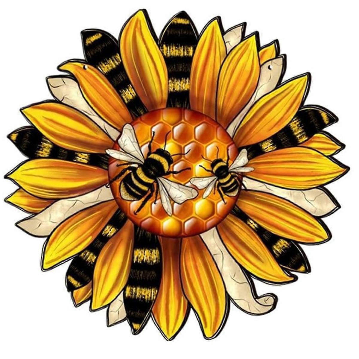 Honey Bee Festival Pastoral Style Bee Sunflower Flower Wooden Sign Home Porch Decoration Wooden Sign Window Pendant