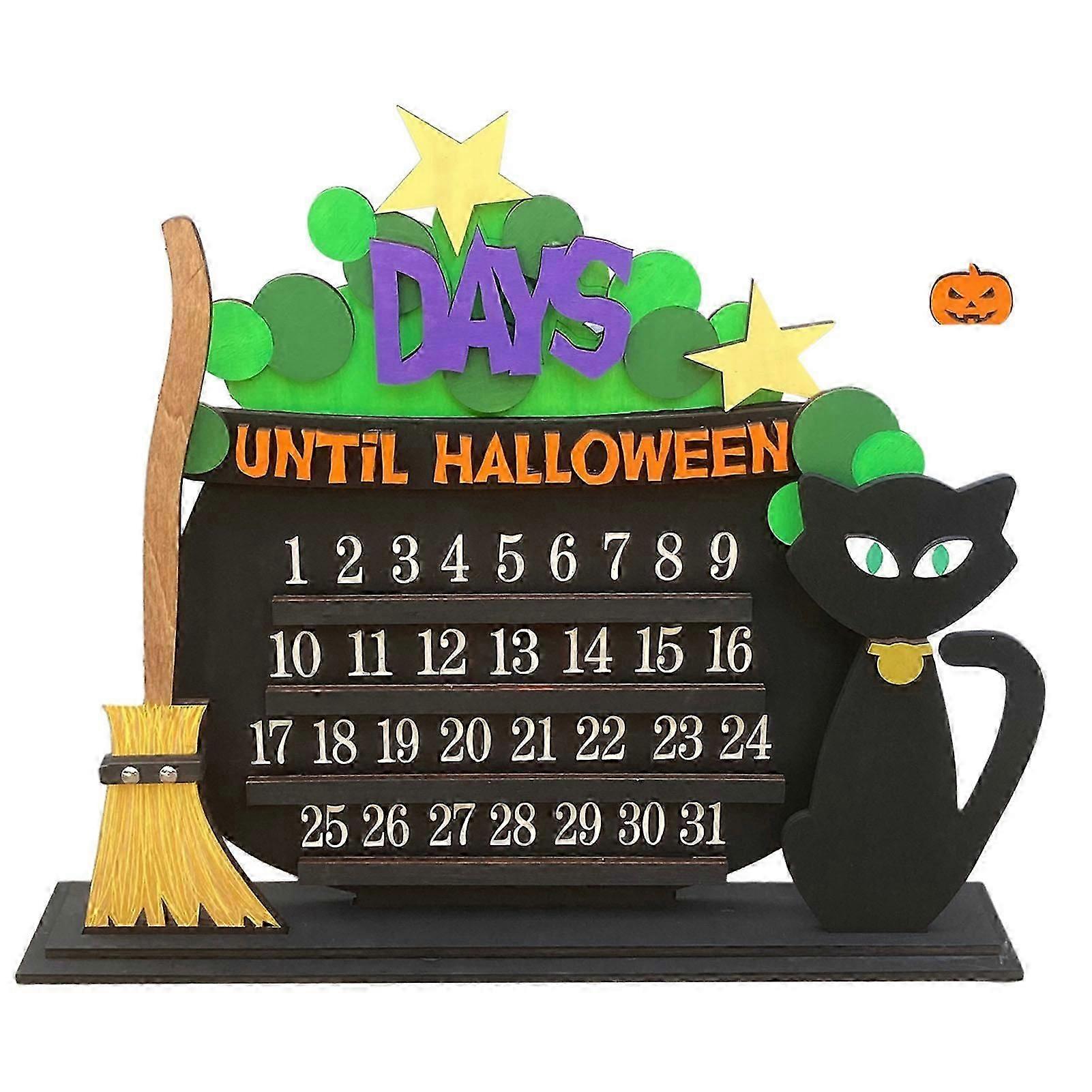 Halloween Festival Countdown Calendar Black Cat Broom Wood Advent Calendar for Halloween Home Decoration