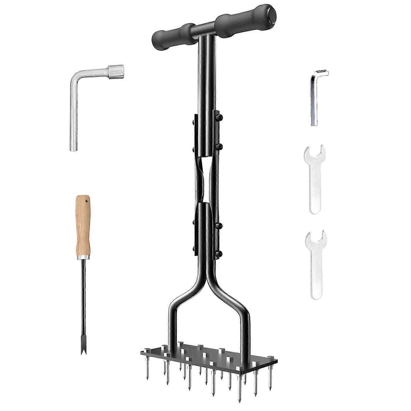 36 Inch Lawn Aerator with 15 Iron Spikes T Handle Manual Soil Aerating Tool Set for Yard Garden