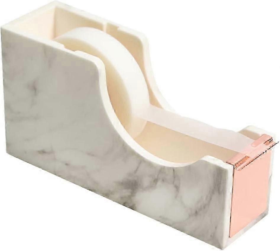 Desk Tape Dispenser Gold Rose Gold Metal Core Marble White Texture Office Supplies 1 Inch (Rose Gold