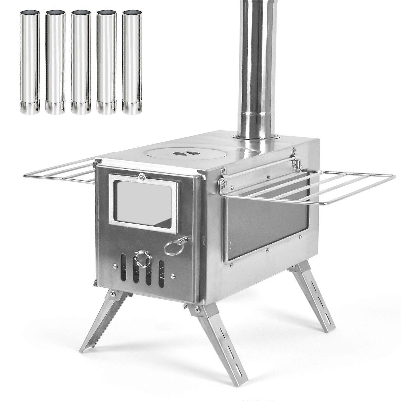 Outdoor Camping Wood-burning Stove for Inside Tents Firewood Burner Foldable Heater with Tent Fire Window Patio Fireplace Campfire Cooking