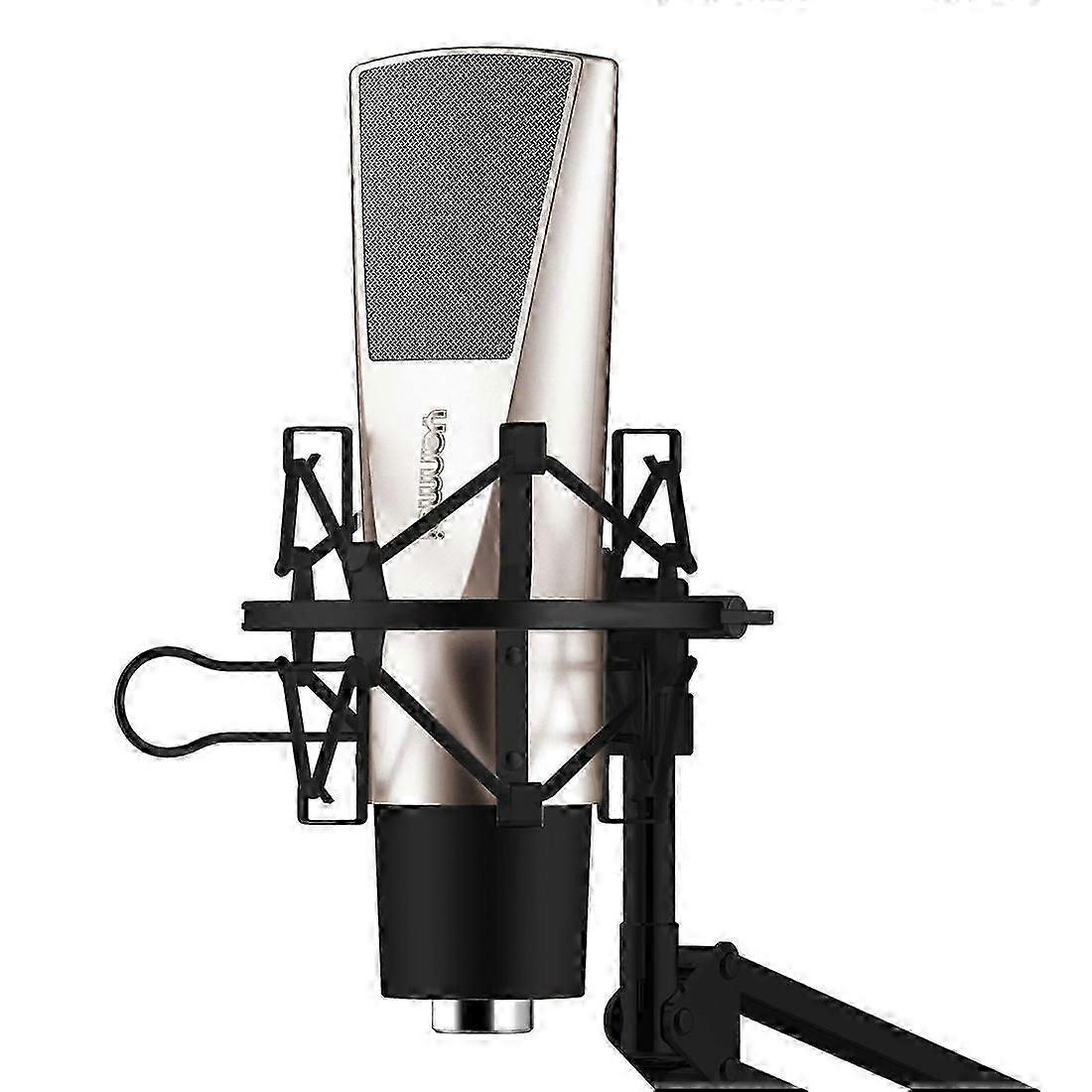 Yanmai Q6 Professional Game Condenser Sound Recording Microphone, Compatible with PC and Mac for Live Broadcast Show, KTV, etc. 1. Classic fashionable appearance design. 5. Good quality ABS material, special tempering treatment on mic mesh,rugged and durable. 3. Professional wired microphone, suitable for recording voice, live broadcast, online k-song, musical instrument performance, online games and other occasions. 4. Adopt single direction directional polar pattern, high sensitivity diaphragm microphone, built-in noise filtering sponge to pick up sound truly and clearly. Note: The microphone stand showed in the picture is not included.