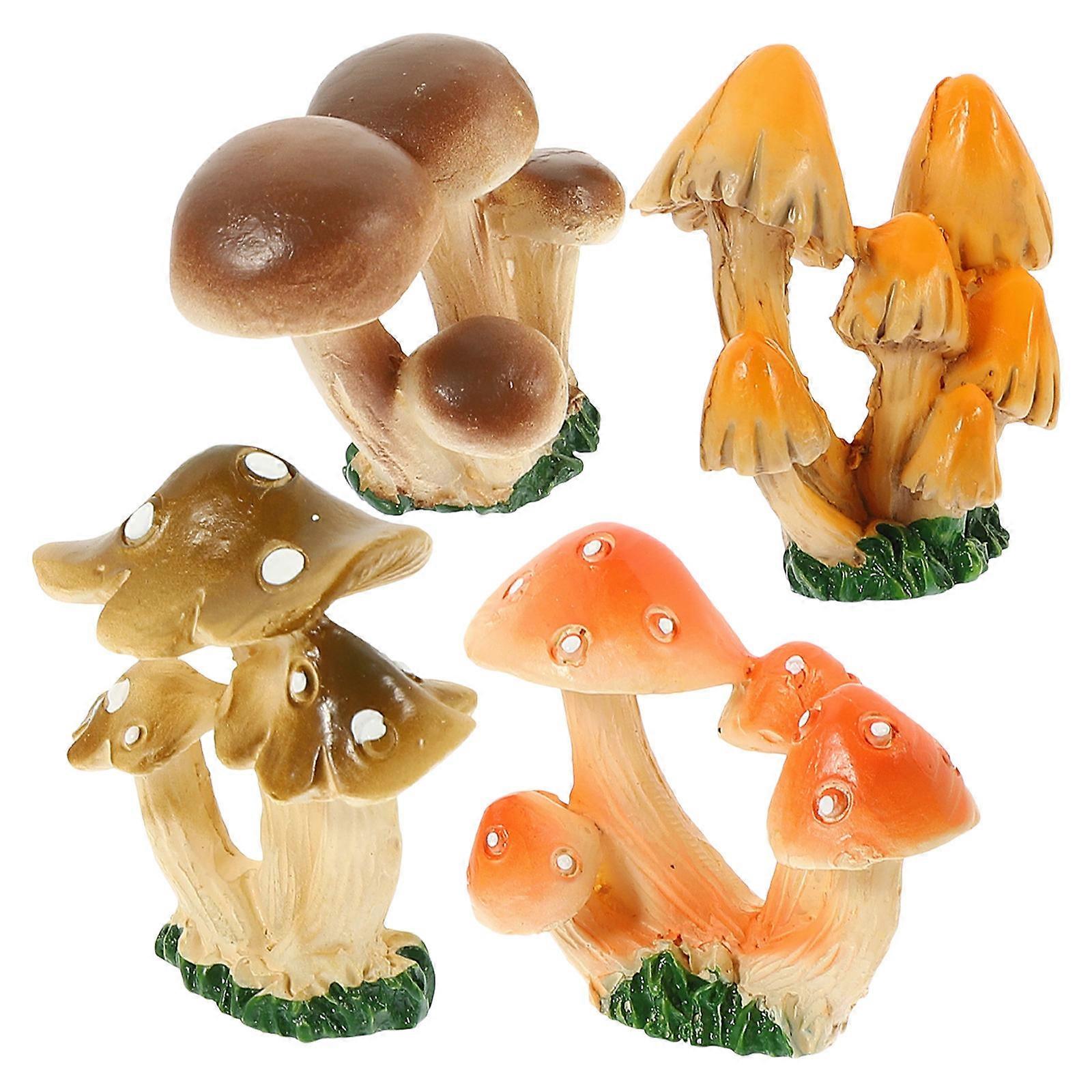 Mini Mushroom Figurine Resin Ornament Outdoor Decorative Cute Design 4Pcs