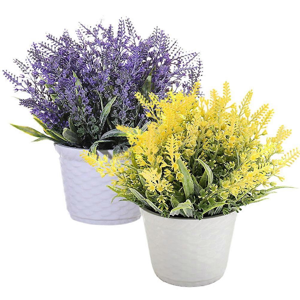 Lifelike Fake Lavender Potted Bonsai for Decor with Assorted Color Melamine and PVC Always Vivid 2 Pcs
