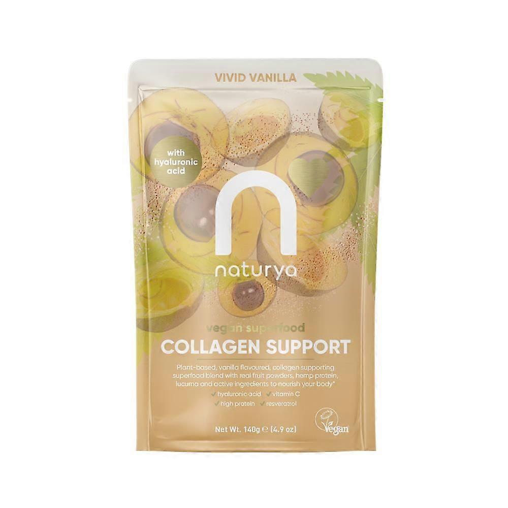 Unlock the power of nature with Naturya's Collagen Support vegan superfood blend. Collagen, the most abundant structural protein in the body, plays a vital role in maintaining the health and integrity of skin, hair, nails, joints, bones, and muscles. This expertly formulated blend harnesses nature's most potent ingredients to support your body's natural collagen formation. Rich in Vitamin C, protein, and fibre, and a natural source of manganese, this delicious vanilla-flavored drink mix is designed to promote overall wellness and youthful vitality. It contains essential amino acids vital for collagen synthesis, complemented by hyaluronic acid, resveratrol, pomegranate extract, and a carefully curated superfood blend to enhance its benefits. Key Benefits: Supports normal collagen formation for healthy skin, hair, nails, joints, and bones Enriched with Vitamin C and manganese to boost collagen synthesis and antioxidant protection Contains vital amino acids along with hyaluronic acid and resveratrol for enhanced skin hydration and anti-aging support High in protein and fibre to contribute to overall nutritional balance 100% vegan, free from artificial additives, and naturally delicious with a vivid vanilla flavor Use Cases: Ideal for daily use as part of your wellness routine, Naturya Collagen Support can be easily mixed into water, smoothies, or your favourite plant-based milk. Perfect for those seeking to maintain healthy, youthful skin and support joint comfort through natural, plant-based nutrition. Embrace a holistic approach to beauty and wellbeing with Naturya Collagen Support Vivid Vanilla “ a natural, effective way to nourish your body from within.
