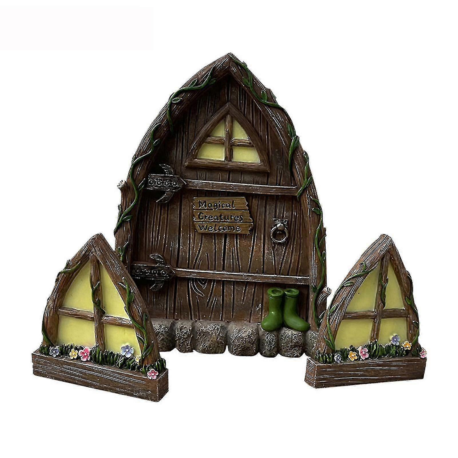 Window Door Resin Ornaments Cute Fairy Miniature Window Door Garden Art Miniature Craft Elf