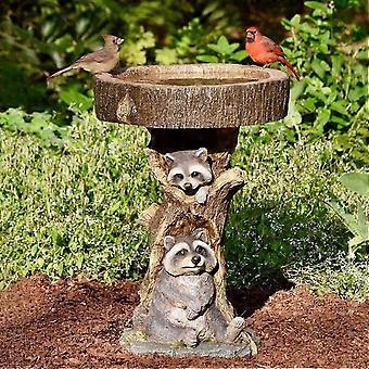 نافورة الركيزة حمام الطيور الراتنج مع قاعدة الغراس والمغذي ، تصميم الراكون للحدائق الخارجية