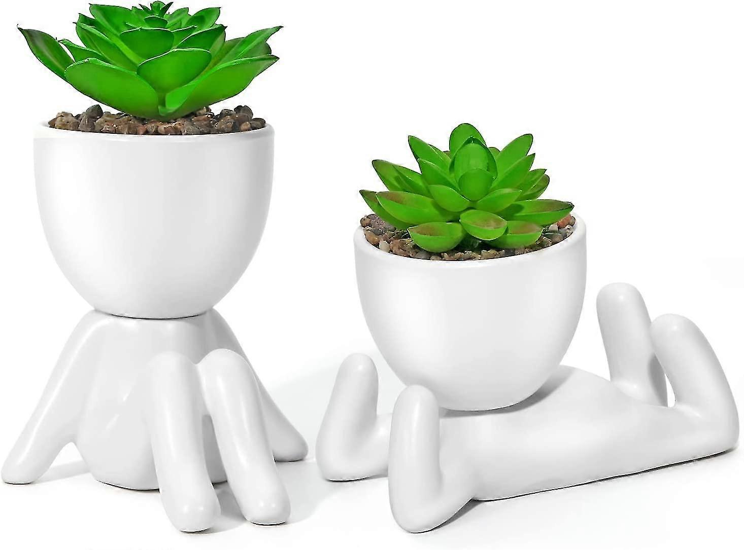 Cute Fake Succulents Plants 2pcs, Fake Desk Plants For Office Artificial Mini Succulents Plants For Desk, Bathroom And Bedroom Decor With Cute Ceramic