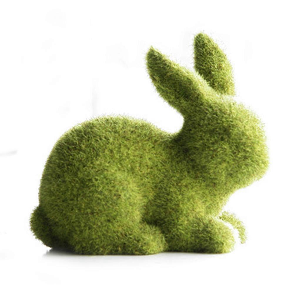Artificial Plant Green Flocking Rabbit Bunny Handmade Animal Easter Decoration