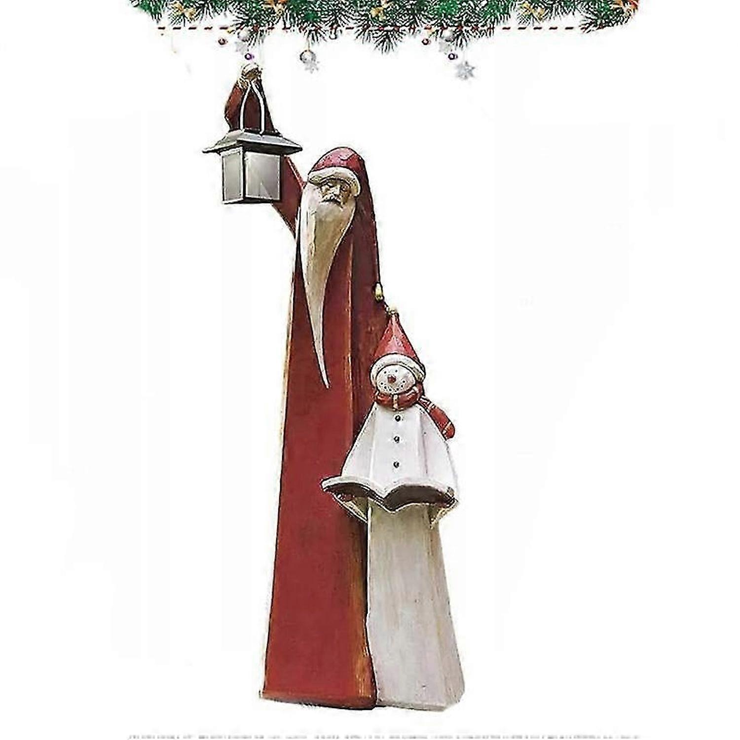 Santa and Snowman Sculpture With Lantern,Santa Claus Snowman Resin Ornament
