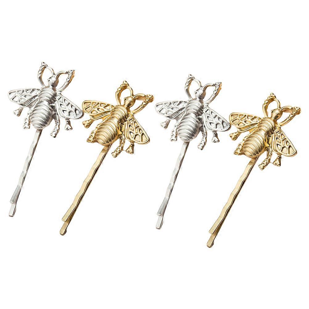 Bee Shape Hair Clips Bang Hair Pins Cute Barrette Elegant Headdress for Women Silver Golden 4pcs Set