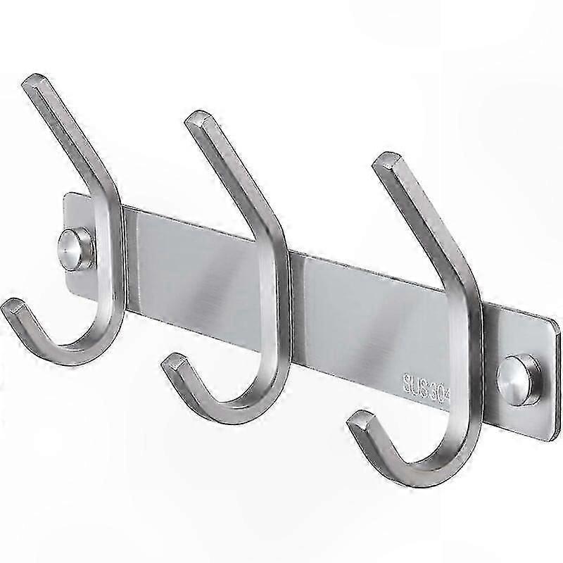 Brushed Stainless Steel Wall Mount Coat Rack with 3 Hooks for Bathroom, 220x80mm SUS 304