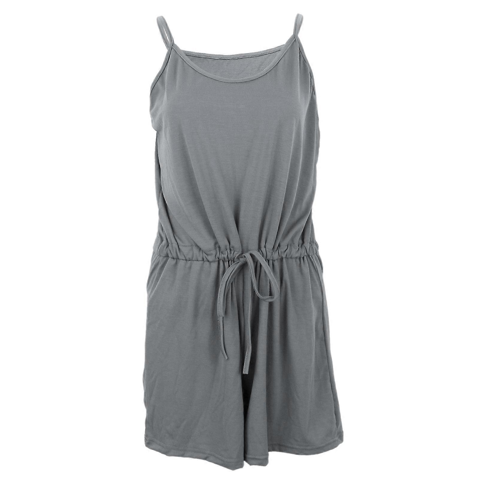 ["Features:\nbrand new and high quality\nCasual short rompers feature spaghetti strap, sleeveless, v neck low back, relax fit.\nAdjustable waist drawstring, short pants design, simple solid color, above knee mini length.\nMade of high quality polyester, soft, skin-friendly, durable, breathable, comfortable to wear.\nSimple solid color, great to pair with slippers, sandals, stilettos or trainers, perfect for summer.\nSuit for casual outdoor, party, beach, vacation, dating, daily wear, fully show your sexy and elegant shape.\n1 jumpsuit only, other accessories demo in the picture are not included!\n\nSpecification:\nMaterial: Polyester\nColor: Blue, Gray, Black\nSize: S/for M/L/XL(Chinese Size,follow the size chart to select please)\nSize:S\tLength:83cm(32.67inch)\tStrap Length:22cm(8.66inch)\tBust:82cm(32.28inch)\tWaist:60cm(23.62inch)\tHip:100cm(39.37inch)\tThigh:62cm(24.4inch)\nSize:M\tLength:84cm(33.07inch)\tStrap Length:22cm(8.66inch)\tBust:86cm(33.85inch)\tWaist:64cm(25.19inch)\tHip:104cm(40.94inch)\tThigh:64cm(25.19inch)\nSize:L\tLength:85cm(33.46inch)\tStrap Length:22cm(8.66inch)\tBust:90cm(35.43inch)\tWaist:68cm(26.77inch)\tHip:108cm(42.51inch)\tThigh:66cm(25.98inch)\nSize:XL\tLength:86cm(33.85inch)\tStrap Length:24cm(9.44inch)\tBust:94cm(37.01inch)\tWaist:72cm(28.34inch)\tHip:112cm(44.09inch)\tThigh:68cm(26.77inch)\nQuantity: 1 pc \n\nWarm prompt:\n1.Asian people size is 1 or 2 sizes smaller than European and American.\n2.Please note that low temperature washed,do not bleach and place under the blazing for sun for quite a long for time.\n3.As different measuring methods,it will occur 1-3 for cm deviation about the items,please ensure that it is okay for you before ordering.\n4.Because of different monitors and lamplight,the picture may not reflect the actual color of the item,really thank you for your kind understanding!\n \nPackage includes:\u007F\n1 x Jumpsuit(without retail package)"]