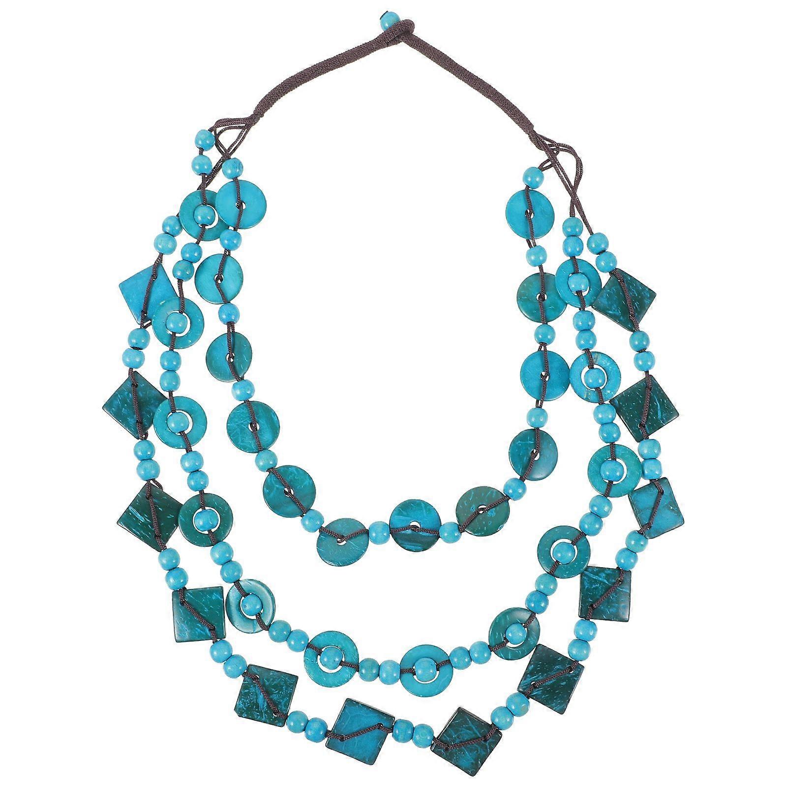 Women Retro Bohemia Style Necklace Coconut Shell Hand-knitted Wooden Beads Beach Fashion Jewelry Pendant Charm for Ladies and Girls (Peacock Blue)
