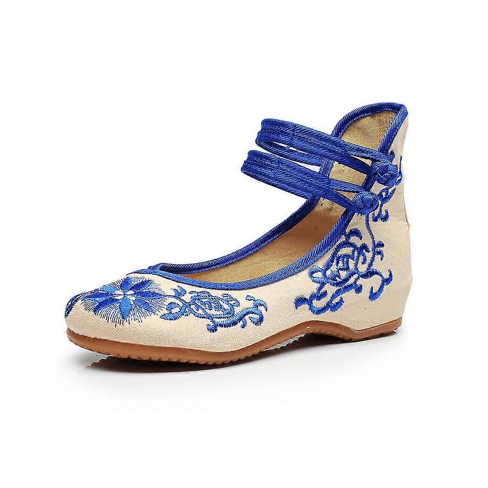 Women's Chinese Vintage Ethnic Embroidery Low Heel Flat Elevator Cheongsam Dress Shoes Sun flower