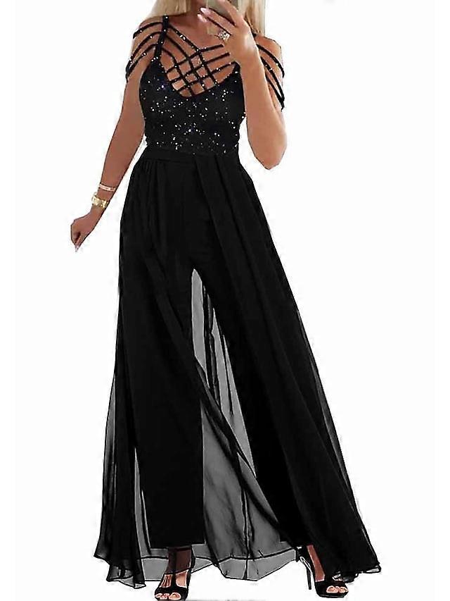 Women's Jumpsuit Print Cold Shoulder Elegant Party Weekend Straight Regular Fit Strap Black